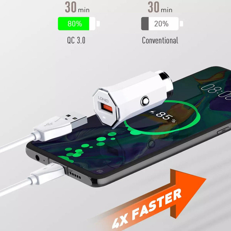 شارژر فندکی الدینیو مدل C313Q به همراه کابل تبدیل microUSB