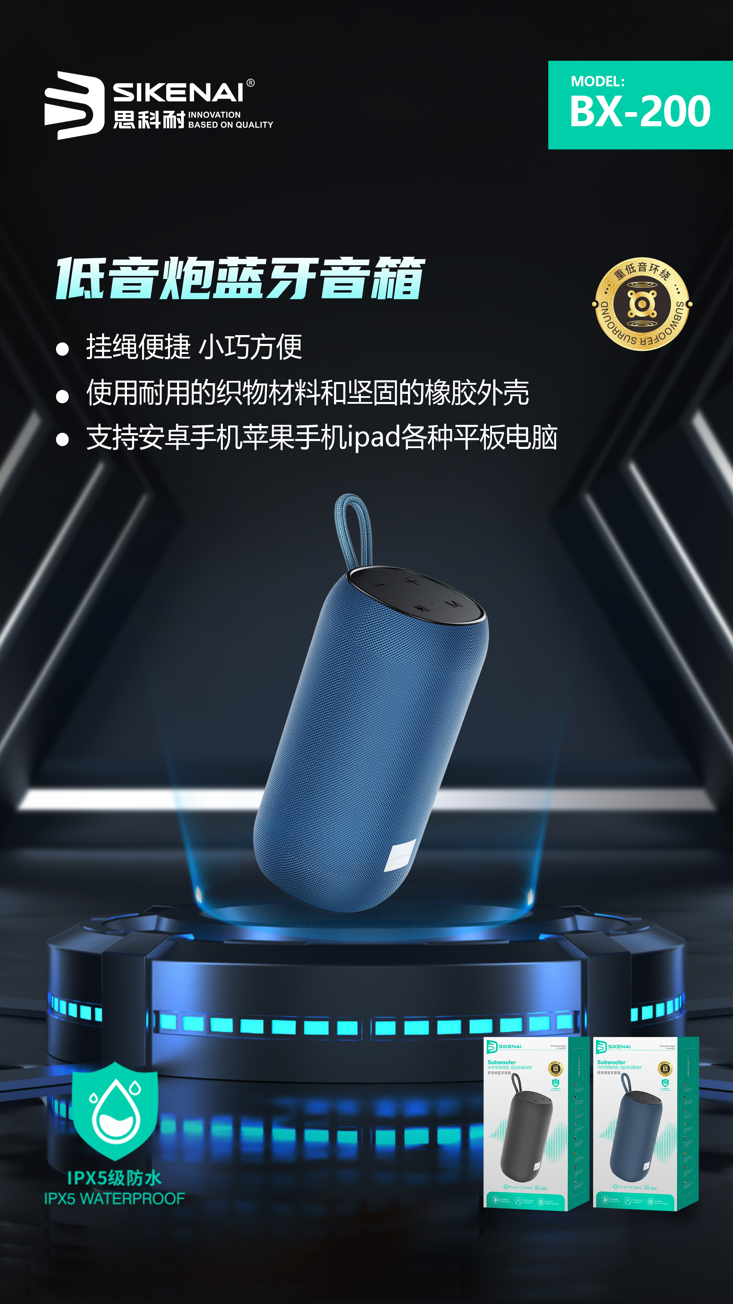 اسپیکر بلوتوثی با کیفیت و قابل حمل – Sikenay BX 200 با طراحی جمع وجور و وزن سبک، همراهی ایده آل برای مسافرت، پیکنیک و استفاده روزمره است.