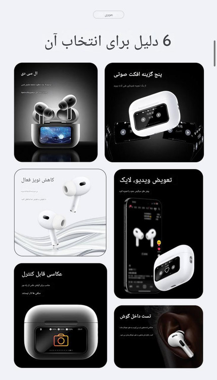 ✅ آیتمهای موجود بر روی نمایشگر ایرپاد عبارتند از: