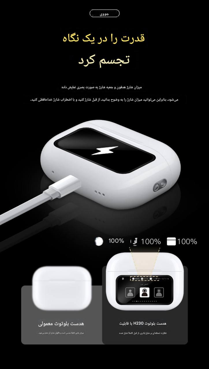 ✅ مدت زمان استفاده با یکبار شارژ ایرپاد ۳.۵ ساعت مکالمه یا ۵ ساعت موزیک